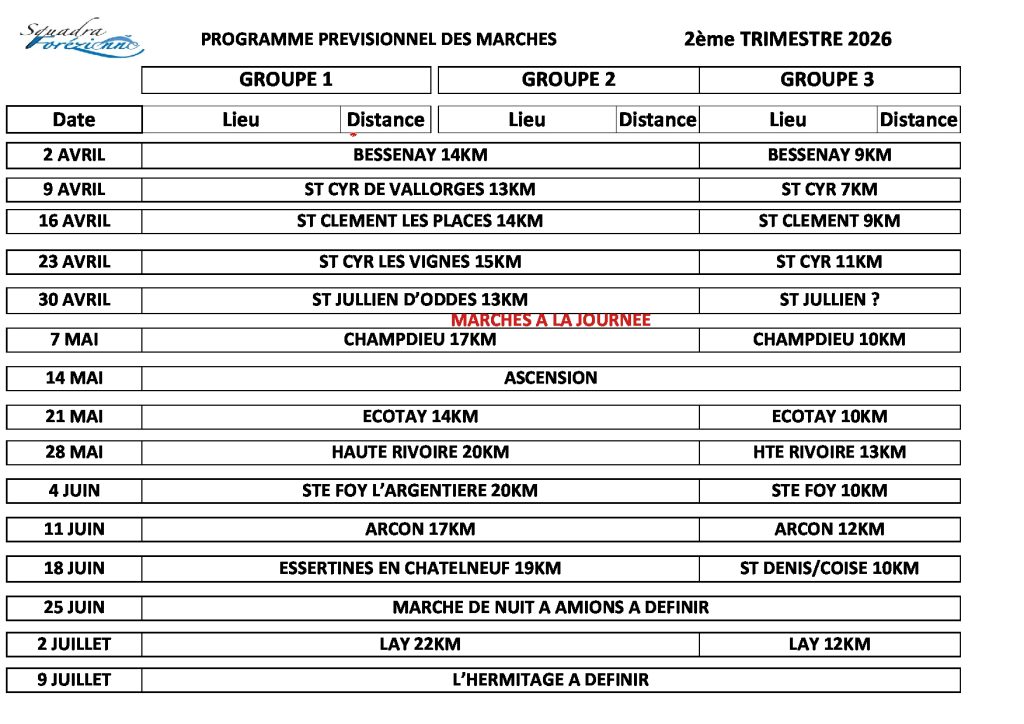PROGRAMME ROUTE 2026 SAMEDI